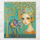 En stiliserad, färglös elefant står bredvid en flicka med stort ögon och en nyfiken, mönstrad hatt. Ljusstark, prickad träd och pulserande lodrät rand fyller bakgrunden med fantasi och känsla. Digital Art Photoshop CS5