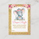 Elephant Diaper Raffle Shower Rosa Blommigt Glitte Tilläggskort