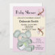 Elephant Dragonfly Rosa Rand Baby Shower Inbjudningar