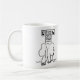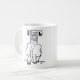 Körinstruktörspresent. Illustration är en svart och vit tecknad som visar att man ger körlektioner på en elefant. Driving School mugg.