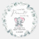 Ett sött klistermärke för dina duschfavörer i flicka och korrespondens med "En söt liten jordnöt är på väg", skrivet i en blandning av modern typografi och ett snyggt med en hjärtsvikt, och en vattenfärg på en pastel rosa baby elefant i en krans av eukalyptus grey. Anpassa med mor till namn och duschdatum.
