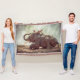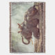 En vävd filt visar en ung asiatisk pojke som ljuger på baksidan av en stor, rekreativ elefant som läser en bok. Pojken är skjortfri, bär kort och bruna skor. elefanten är grått med långa betar och ljuger på en säng löv. Bakgrunden är en oskarp skogsscen. Filten har en fringerad kant. Bilden är tagen med mjukt, diffust ljus, ge en varm, nostalgisk känsla.