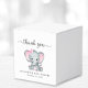 En söt liten jordnöt är på väg, skriven i en blandning av mjuk grått-typografi och ett snyggt-skript med dekortecken och en pastellfärgad rosa av en baby-elefant. Anpassa mor till namn och duschdatum i enkel grått-typografi.