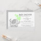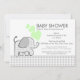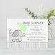 Söt elefantduschinbjudan med grått gingham check mönster och grönt hjärtan.