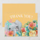 Elephant Gult Rosa Teal Blommigt Tack Kort