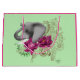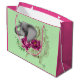 Sidoprofil för en elefant med segmentet uppåt. Fuchsia lotus-blommor och rennin i ett sammanhang av grönt