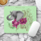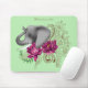 Sidoprofil för en elefant med segmentet uppåt. Fuchsia lotus blommor och henna i bakgrunden av grönt.