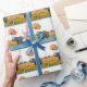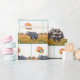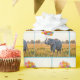 En elefant har en massa färgfulla födelsedagsballonger med sin bagage medan han står i ett solbelyst fält