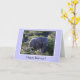 Den här roligtens födelsedagskort innehåller ett foto av en afrikansk elefant som vill önska dig ett "Grattis på födelsedagen!" elefanten flyger genom träd och shruber i sin naturliga livsmiljö i södra Afrikan. Ett underbart val av hälsning-kort för ett älskare eller fläkt för vilda djur och växter. Du kan anpassa hälsning inuti och även ändra kortomslaget färg till kostym enligt dina egna önskemål.