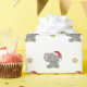 elefanten vid jul med ljus. Lungdjur med gåvor och snö för helgdagarna. En fin jul hälsning. Elefanter är söta djur och perfekt till jul.
