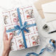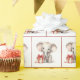 Vattenfärgad elefant med en julklapp på vit bakgrund och röd gräns.