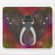 En elefantslapp med öron öppnad och fylld med en galaxi av stjärnor. Kosmos består av vita stjärnor. De benvita elefantbetarna är kurvor inåt. Bakdu om-symbolen placerades på pannan för att visa att ett öppet öron för universum leder till harmoni.
