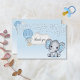 Tack till er gäst med den här berömvärda pojke-elefanten med "Tack" på ett moln och en söt elefant i en blå luftballong med silver konetti-bakgrunden. På baksidan, en söt elefant i blå luftballong med blå och vit övertoningsbakgrund.