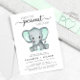 En söt babyduschinbjudan i par med gender-neutralt och "En söt liten jordnöt är på väg" är skriven i mjuk grått modern typografi och ett skript med dekorationer och en halvfärg grönt av en elefant från baby. Anpassa föräldrarnas namn- och babyduschdetaljer i enkel grått-typografi. Du kan också ange genderna baby om du vill (t.ex. "Är på väg").