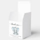 En söt liten jordnöt är på väg. Den är skriven i en blandning av mjuk grått-typografi och ett snyggt-skript med dekorationer och en pastellblå vattenfärg av en baby-elefant. Anpassa mor till namn och duschdatum i enkel grått-typografi.