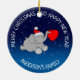 Cute elephant med röd hatt och väska med julklappar över blå bakgrund med vit snöflingor