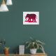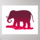 Silhouette av en elefant baserad på en vintage 1800:s reklam i en gradient från rosa till mörk hallonrött.