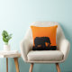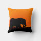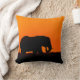 Dekorativ kudde med en svart silhuett av en elefantbete på sidudu-öns lush i floden Chobe framför en orange solnedgång.