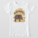 The design features a charming cartoon-style illustration of an elephant, rendered in warm brown tones. Its large, expressive eyes and wide ears give it a friendly and approachable character. The elephant’s trunk gracefully curves downward, adding movement to the composition. Behind it is a yellow brushstroke-like backdrop, which adds a splash of playfulness and contrast. Above the elephant, the word “ELEPHANT” is displayed in bold, all-caps brown lettering that complements the character’s color and feel.
