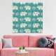 En vattenfärgselefant mönster skapat i ett mjukt, tealt färg. Konstnärer: Daphne Brissonnet