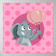 Utformning med illustration av söt liten elefantflicka som håller rosa ballonger på rosa polka punktbakgrund; design för barn av Maxi Harmony