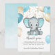 Elephant Turquiose Balloons Baby Shower Tack Kort