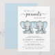 En söt duschinbjudan i pojke par med "Två söta små jordnötter är på väg" skriven i mjuk grått modern typografi och ett snyggt-skript, och två pastellblå vattenfärger i baby elefanter. Anpassa föräldrarnas namn och duschdetaljer i enkel grått-typografi.