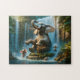 This delightful "Waterfall Shenanigans: The Joyful Elephant Pool Party" jigsaw puzzle captures a playful moment in the heart of a lush jungle. A cheerful elephant sits joyously on a mossy rock, splashing in the cascading waters of a serene waterfall. Surrounding it are smaller elephants and playful monkeys joining in the fun, creating a scene full of laughter and carefree energy. The image symbolizes the joy of nature, the bonds between animals, and the beauty of untamed wilderness. It’s an uplifting celebration of wildlife in its natural habitat, perfect for animal lovers who cherish the wonder and happiness of the animal kingdom.