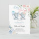 Elephants gender reveal invite, pink blue flowers. inbjudningar