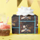 En svart halv med sin dragonvän och lila fjäril i bakgrunden av sten och röda och svarta drakplattor