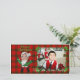 Elf-julfotoportet. Bild och illustration är söt, liten elf som håller en banderoll på pläterad bakgrund med holly ram. Texten är helt och hållet anpassade. Lägg till informationen eller ändra den helt. Markera ett annat teckensnitt och färg.