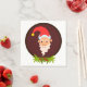 En Porträtt av en Tecknad Elf, med ett vitt skägg och en röd hatt, är delvis inramad med skal och bär.