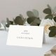 Chic och minimalistisk. Dessa platskort har ett modernt teckensnitt mot en ljus elfenbensvit bakgrund. Framsidans design upprepas på baksidan för synlighet tvärs över bordet och valfri välkomsttext på insidan för gästerna. För handskrivna kort, lämna helt enkelt textrutan tom för gästens namn. Designad för att samordna med andra föremål i kollektionen.