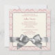 Elegant elfenbensbeige och blekrosa damast med söt silvergrå rosett babyflicka foto dop- och dopinvitation. Denna eleganta rosa foto dop- och dopinvitation kan enkelt anpassas för din fest genom att lägga till ditt foto, evenemangsinformation, typsnitt, teckenstorlek och färg samt formulering. Observera att alla dekaler, kort och inbjudningsdesign du hittar på Zazzle är tryckta bilder utan faktiska ädelstenar, rosetter, upphöjda, präglade eller tillagda delar eller bitar.