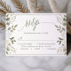 Säkra ett smidigt och stilfullt svar från dina gäster med den elfenbens- och salviafärgade svarskortet med blomsterdekor i elegant typsnitt. Detta kort visar upp ett graciöst typsnitt mot en bakgrund av ömtåliga elfenbensfärgade blommor och mjuka salviafärgade accenter, vilket skapar en inbjudande och sofistikerad estetik. Komplett med alternativ för måltidsval är detta svarskort både funktionellt och elegant, perfekt anpassat för moderna bröllop som värdesätter en touch av tidlös charm. Anpassa det med dina detaljer för att göra det till en smidig del av din bröllopsbrevpapperssvit.