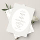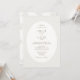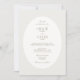 Elegant och chic. Detta moderna lyxiga bröllopsinbjudningskort har en samtida uppsättning teckensnitt och kalligrafiska accenter vid sidan av en trendig oval ram. Baksidan har ett subtilt botaniskt mönster överlagt i typsnitt mot en mjuk elfenbensvit bakgrund. Detta kort känns genomtänkt och gör ett stilrent intryck. Genomgående i kollektionen ger den genomtänkta och stilrena designen en känsla av sammanhållning och mening.