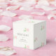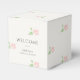 Dessa presentboxar har ett litet blommigt rosa vattenfärg-mönster, en välkomsttitel och parets namn mot en mjuk elfenbensvit bakgrund. Passar bra med andra föremål i hela brölloppskollektionen.