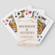 De romantiska bröllop-spelkorten har ett modernt och elegant tema. Namnen på briden och trimmen, eller det nya lykta paret, skrivs ut på framsidan som du kan ändra till att inkludera egna namn eller egen text. Datumet bröllop skrivs ut nedan. En agate stone mönster trycks längs översta och grund, med accents från guld glitter. Bakgrunden är ett mjukt elfenben färg. De gör en underbar Tack åt dina gäster.