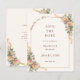 Meddela om din speciella dag med detta eleganta och romantiska "save the date"-kort med mjuka champagnetoner, ömtåliga blommor och detaljer i form av flätade band. Designat med en raffinerad ram och en graciös accent i form av skrivstil, skapar detta kort ett tidlöst och sofistikerat första intryck för din bröllpsfest.
