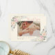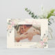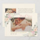En varm elfenbensvit bakgrund ger detta boho-platta tackkort en mjukare, vintageinspirerad känsla. Akvarellblommor i rosafärgade och elfenbensvita nyanser, tillsammans med ömtåliga fjäderaccentuer, inramar ett infogat parfoto, med "tack" i flytande rosa kalligrafi och namn och datum i guldtypografi undertill. Baksidan har ett andra foto tillsammans med ett helt anpassningsbart meddelande med matchande blommor och fjäderaccentuer. Perfekt för par som dras till en varm, romantisk boho-färgskala.