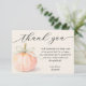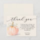 En söt pumpa, bunden med ett elegant elfenbensfärgat band, framhäver dessa könsneutrala baby shower platta tack-kort, med ditt personliga tack-meddelande tryckt eller lämna tomt för att handskriva din not. (Tillgänglig även i rosa och blå.) MATCHANDE artiklar i vår samling.