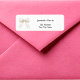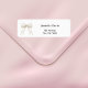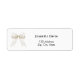 En vit bakgrund dekorerad med en elfenbensfärgad, krämfärgad båge. Personifiera och lägg till ditt namn och adress. Svarta bokstäver.