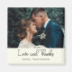 Dela din tacksamhet med denna eleganta elfenbensfärgade bröllopsmagnet "Kärlek och tack". Framsidan visar ert favoritbröllopsfoto tillsammans med era personliga namn och datum, vilket skapar ett minne som era gäster kommer att värna om. En perfekt liten tacksamhetsgåva som är både stilfull och meningsfull, idealisk för kylskåp, tavlor eller någon speciell plats som håller bröllopsminnena vid liv.