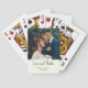 Lägg till en lekfull och personlig twist på era bröllopsgavor med dessa anpassade elfenbensfärgade “Kärlek och tack” poker kort. Framsidan visar ert favoritbröllopsfoto tillsammans med era namn och datum, förvandlar en vanlig kortlek till en unik souvenir. Perfekt för spelälskande par eller som en rolig tackgåva till gästerna, stilfull, personlig och oförglömlig.