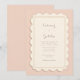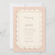 Presentera din händelse med en touch av tidlös sofistikering med hjälp av denna vackert formade brevpappersdesign. Inbjudan har en unik, utstansad scallopad kant som ger siluetten en mjuk, vintageinspirerad våg, som skiljer sig från vanliga rektangulära kort. Bakgrunden är en mjuk, blek elfenben eller rosaktig beige, som ger en neutral och ren duk för din typografi. En dubbel guldpräglad ram följer den inre rektangulära formen och ger en subtil antydan om metallisk lyx utan att överrösta den minimalistiska estetiken. Denna mångsidiga och klassiska design är ett felfritt val för ett traditionellt kyrkbryllup, en söt 16-års födelsedagsfest eller en charmig bröllopsbrunch. Du kan också välja denna underdrivna stil för ett baby shower-kort, en sofist