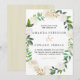 Vårt elfenbensfärgade bröllopsinbjudan är en akvarelldesign i nyanser av elfenben, vitt, kräm och grön bladverk med rosor och peonior.