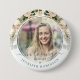 Den perfekta minnesknappen för vänner och familj att bära på en begravning eller minnesstund med en bild av din älskade och orden "in loving memory" och deras namn. Designen har en elfenbensvit akvarell blomsterdesign och kalligrafiskrift.