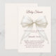 Arrangera en sofistikerad fest med denna eleganta könsneutrala baby shower-inbjudan. Designen har en stor, detaljerad elfenbensfärgad rosett prydd med ömtåliga pärlband mot en mjuk, krämfärgad bakgrund. Det är det perfekta valet för blivande föräldrar som föredrar en tidlös och klassisk estetik för deras kommande tillskott.