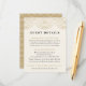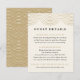 Har du ett Great Gatsby-tema på din bröllopsfest? Ge dina gäster alla de andra specifika detaljerna om bröllopet. Detta Art Deco-inspirerade gästinformationskort har en guld-sträng-ljusdesign på en elfenbensvit bakgrund. Anpassa det och gör det till ditt eget. Du kan ändra text, färg och storlek. Baksidan har ett Art Deco-mönster och passar perfekt till "Art Deco Strängljus Bröllopssamling", hittar du i min Zazzle-butik.