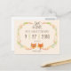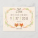 Den här charmerande bröllopsinbjudan innehåller ett välklädt rävpar omgivet av ett garland av handdragna löv i en arrangemang av rustiska krans.